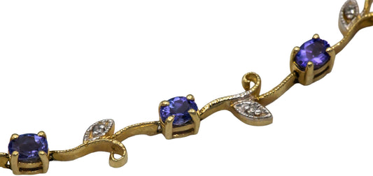 14k Yellow Gold 1.56CT Diamond and Tanzanite Floral Link Bracelet