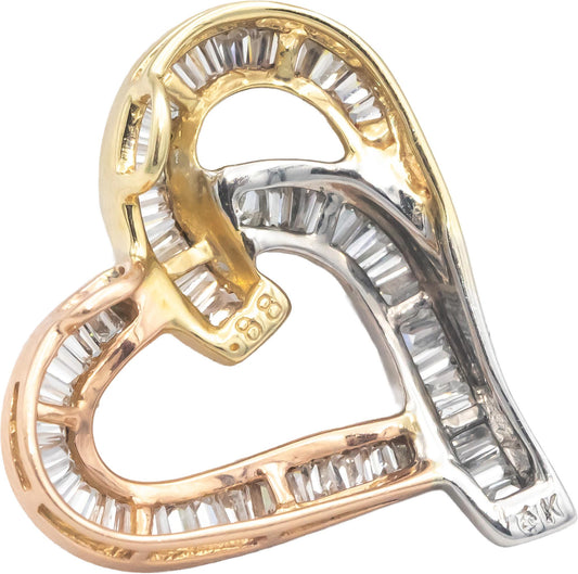 14k White Rose Yellow Gold 1.50CT VS Baguette Cut Diamond Heart Pendant