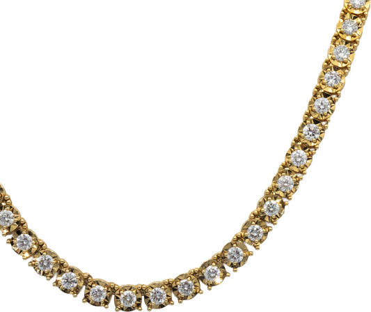 14k Yellow Gold VS Round Cut Diamond Tennis Necklace 20.25" Long 13.02CT
