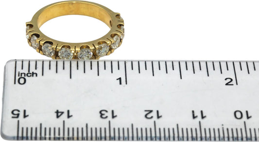 18k Yellow Gold 1.51CT Round Cut Diamond Half-Eternity Band Ring Size 6.5