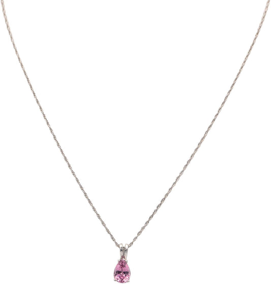 14k White Gold 1.30CT Pear Cut Pink Spinel Solitaire Pendant Necklace