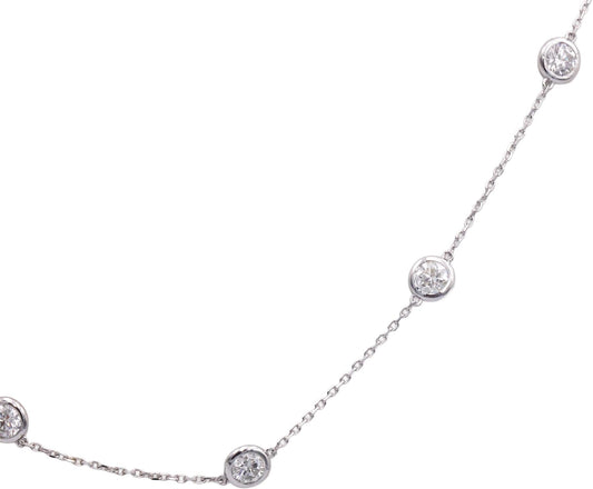 14k White Gold 3.13CT Round Cut Diamond By The Yard Chain Necklace