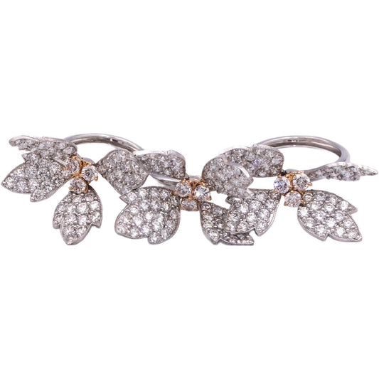 STAMBOLIAN 18k White Yellow Gold Diamond En Tremblant Leaf Double Ring 12.88CT