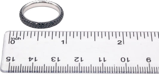 18k White Gold 0.75CT Round Cut Black Diamond Eternity Band Ring Size 5.75