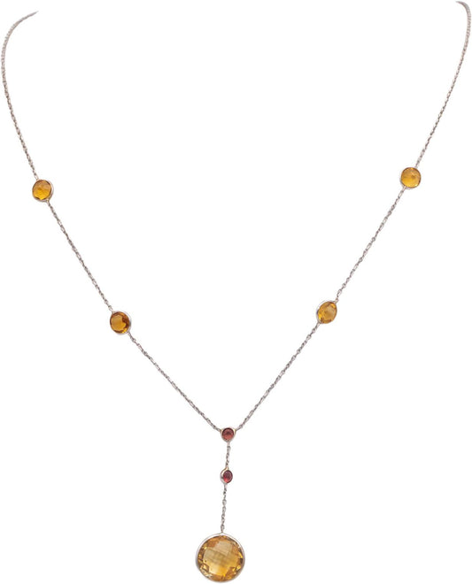 14k White Gold 4.0CT Citrine and Pink Tourmaline Dangle Drop Chain Necklace